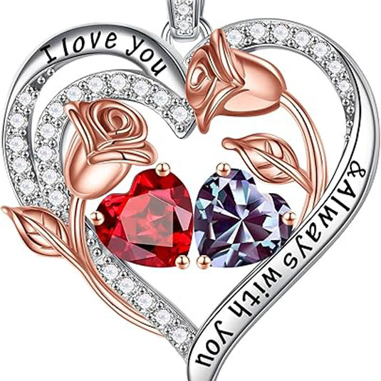 These double birthstone pendants come in 78 styles, making them a thoughtful gift for a wife, mom, daughter, aunt, sister, or grandmother on Mother’s Day, birthdays, Christmas, Valentine’s Day, or any special occasion. The design features two birthstones—one representing your birth month and one representing hers. When she wears this heart necklace, she’ll feel truly cherished.