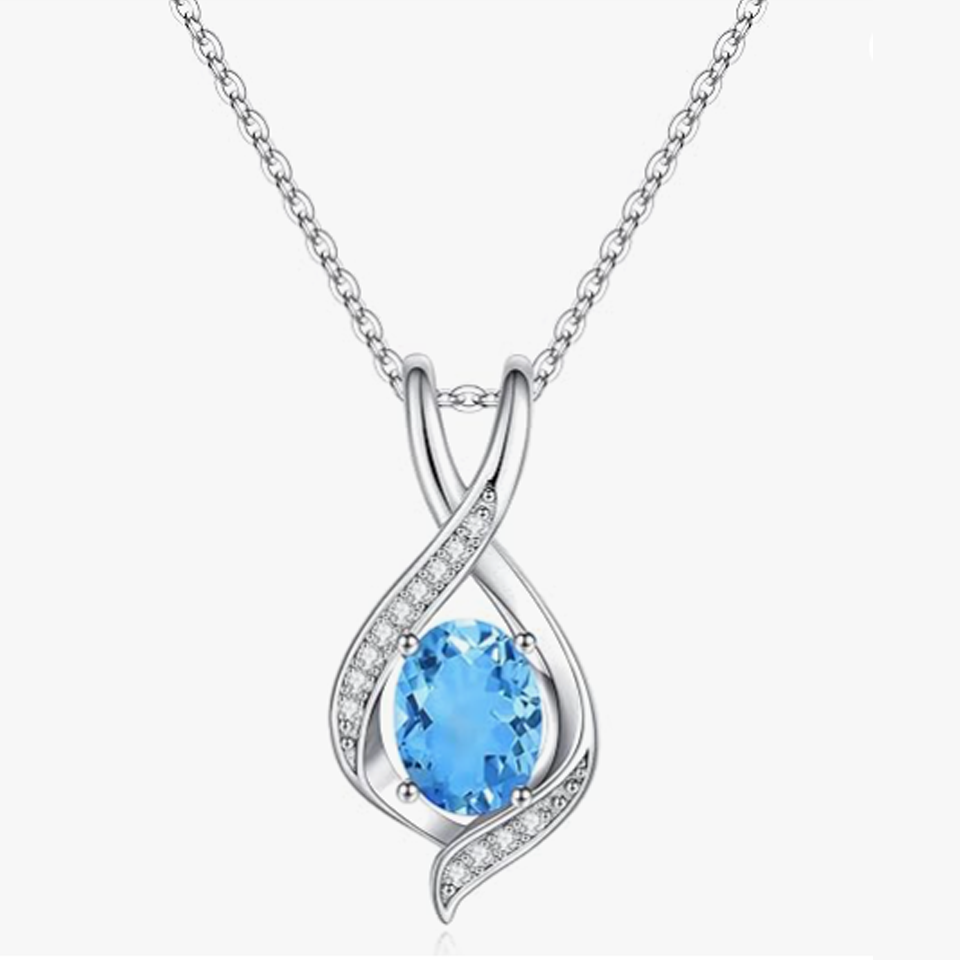 & Free ShippingA beautiful 925 sterling silver (blue Stone) oval birthstone pendant necklace featuring a sparkling aquamarine-colored cubic zirconia gemstone. Designed with a classic link chain, this elegant pendant makes a meaningful gift for birthdays, anniversaries, and Christmas—perfect for wives, girlfriends, moms, and grandmas.